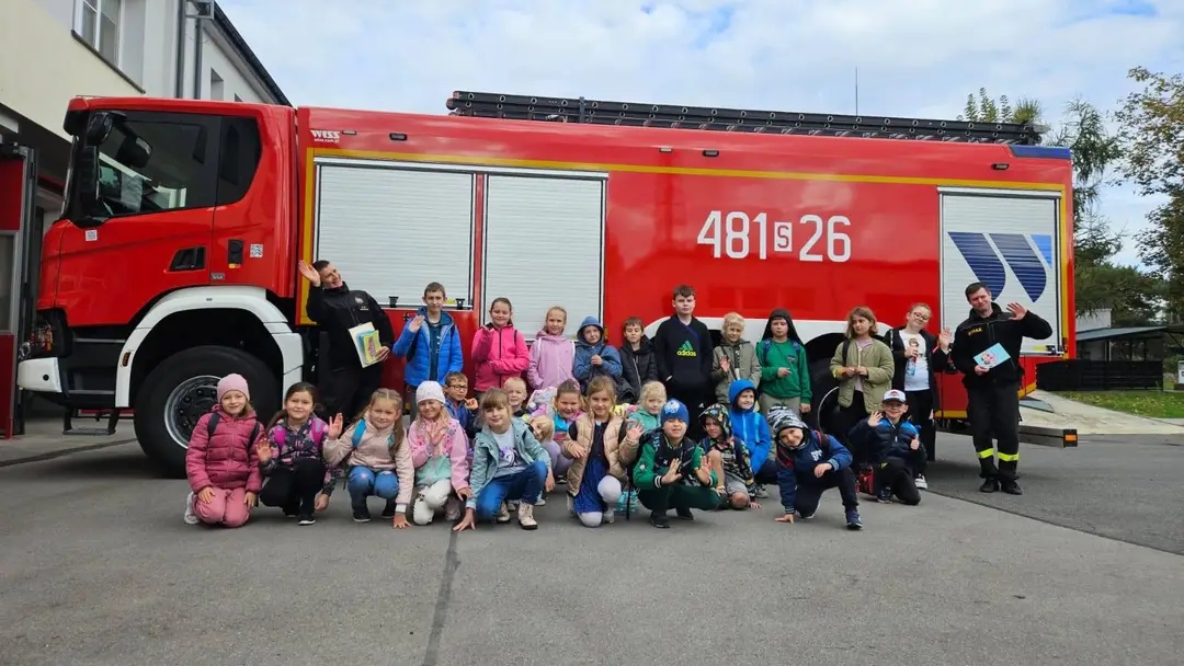Dzieci z klasy 1B oraz 3B wybrały się dzisiaj na wycieczkę do Państwowej Straży Pożarnej. Podczas wizyty miały okazję poznać na czym polega praca strażaka oraz dowiedzieć się, jak wygląda jego codzienna służba.  Strażak opowiedział o swoich obowiązkach i zaprezentował dzieciom specjalistyczny sprzęt używany podczas akcji ratunkowych.
